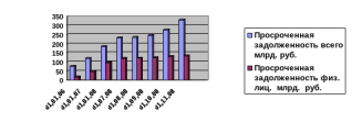 | Просроченная задолженность всего млрд. руб. | 76,4 | 121,1 | 184,1 | 231,8 | 237,3 | 245,7 | 276,2 | 330,9 |