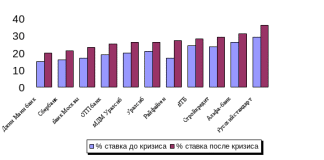 | Название Банка | Название кредита | Процентная ставка до начала кризиса | Процентная ставка после кризиса |
