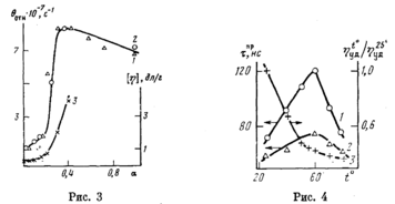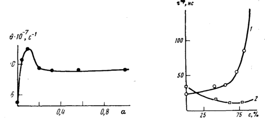 В работах [5, 6] было обнаружено, что времена релаксации нано-секундных релаксационных процессов изменяются заметным образом при различных структурных переходах в макромолекулах в растворе. Поэтому метод поляризованной люминесценции был использован для исследования динамики макромолекул полимеров различных классов при структурных переходах типа клубок — глобула [7], клубок — компактная структура [8, 9], клубок — α-спираль — компактная структура — глобула [10] и для изучения других структурных переходов. Было обнаружено также, что внутримакромолекулярная динамика чувствительна не только к структурным превращениям макромолекул в растворе, но и к изменениям внут-римакромолекулярных взаимодействий различных типов. На этой основе исследуется структурообразование в растворах полимеров — формирование внутримакромолекулярных структур и надмолекулярных образований.