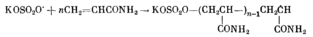 При использовании в процессе полимеризации гидроокиси натрия скорости расхода мономера и инициатора также увеличиваются по сравнению с полимеризацией в нейтральном растворе, причем кинетические кривые изменения концентраций в течение процесса носят S-образный характер. В начальный период полимеризации, когда в системе еще нет аммиака, а значит и аминов, разложение инициатора протекает с небольшой скоростью. По мере накопления аммиака, образующегося при гидролизе амидных групп, в растворе появляются амины, приводящие к увеличению скорости инициирования, что находит отражение в уменьшении [п] полимеров.