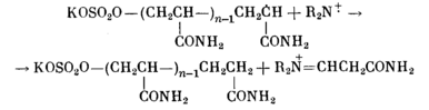 В случае распада ПСК под действием ТКА в системе, содержащей по-лимеризующееся соединение (акриламид), радикал KOSO2 реагирует не только с катион-радикалом R3N*, отрывая от него атом водорода, но и с молекулой мономера, вызывая его полимеризацию