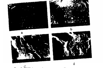 О степени распределения наноразмерных частиц глины можно судить по фотографиям поверхностей нанокомпозитов, сделанным с помощью СЭМ (см. рис. а, б, в, г).