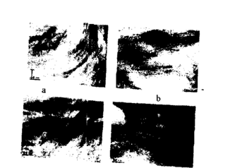 Рис. 10. ТЭМ фотографии поверхностей нанокомпозитов: а - 2 % органоглины в ПБТ; b - 3% органоглины в ПБТ; с - 4 % органоглины в ПБТ; d - 5% органоглины в ПБТ О степени распределения органоглины в нанокомпозите можно судить и по ТЭМ-фотографии (рис. 11,12). При содержании органоглины 2-3 мае. % слои глины разделены слоем полимера толщиной -4-10 нм (рис.Н). При большем содержании органоглины 4-5 мас.% большая часть глины распределена хорошо, но встречаются агломераты размером -4-8 нм.