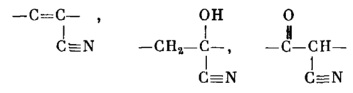 Механизмом появления структур, содержащих С=С-связи, кроме реакции образования нафтиридиновых циклов [8], может быть, например, образование NH- и NH2-rpyпп на концах системы сопряженных гетероциклов