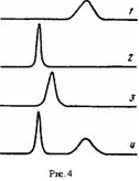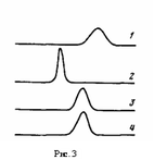 Единственный компонент на седиментограмме смеси характеризуется значением 5сНпэк, удовлетворяющим соотношению 5снпэк(φ=0,2)< <5сНпэк<5снпэк(φ=0,45) и 5снпэк,нпэк (φ=0,33). Площади пиков седиментограмм (3) и (4) на рис. 3 совпадают, что свидетельствует об исчерпывающем протекании реакции (3).