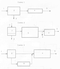 В первом способе (схема 1) предусматривается регулирование расхода стока за счет устройства на коллекторах дождевой канализации раздельных камер. В этом случае на очистку направляется сток от мало интенсивных дождей и часть стока с определенным расходом от интенсивных дождей, а остальная часть сбрасывается без очистки.