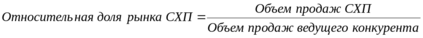 Для построения матрицы БКГ необходимо на основании исходных данных рассчитать относительную долю ранка СХП: