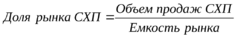 а также, для представления доли СХП на окружности, диаметр которой пропорционален емкости рынка, необходимо рассчитать долю рынка СХП: