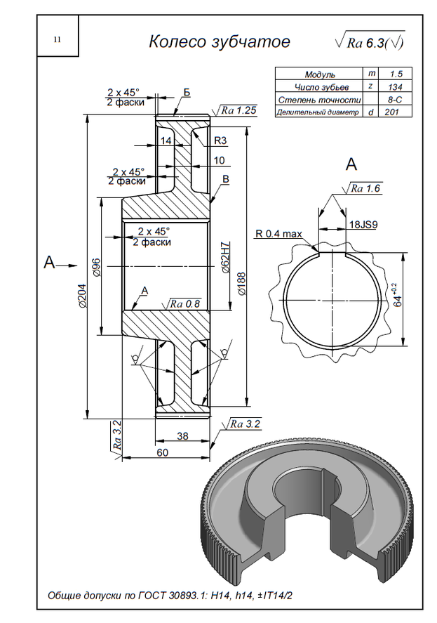 Анализ вариантов изготовления заготовок проектируемой детали показал, что минимальный объем механической обработки резанием требуется при изготовлении изделия из отливки, эскиз которой приведен на рис. 3.5.