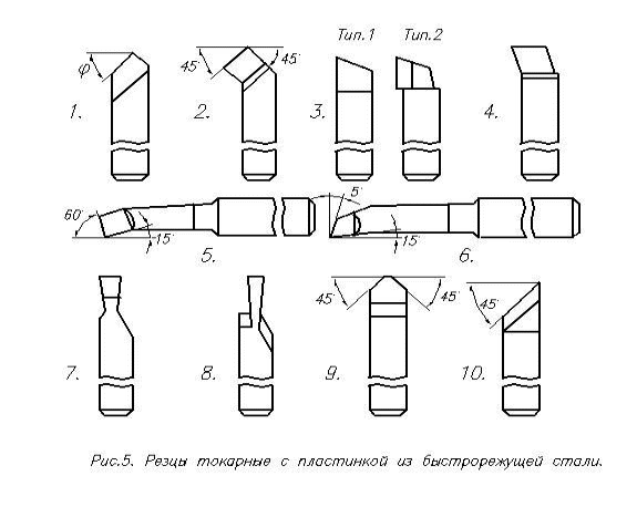 Рис 1.2. Резцы токарные с пластинкой из быстрорежущей стали