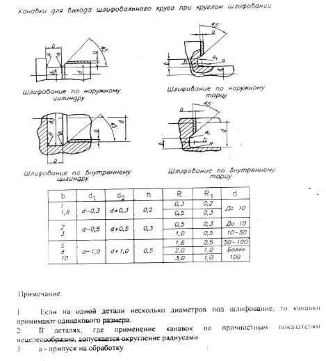 Рис 1.6. Размеры канавок для выхода шлифовального круга