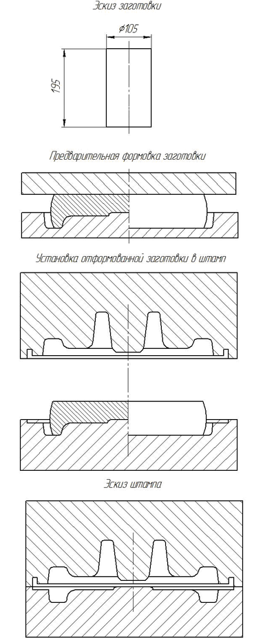 5. Последовательность изготовления поковки горячей объемной штамповкой