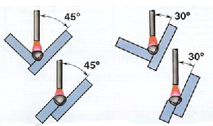 Формирование стыкового шва происходит в благоприятных условиях, а углового шва - в более сложных. Наилучшие результаты при сварке угловых швов обеспечиваются при сварке наклонным электродом и сварке в симметричную «лодочку».