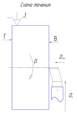 Поверхность Б – точение чистовое (Ra 6,3 …0,4 мкм, квалитет ISO 10…8); Поверхность В – точение получистовое (Ra 20…1,6; квалитет ISO 13…11); Поверхность Г - точение получистовое (Ra 20…1,6; квалитет ISO 13…11); Поверхность Д – растачивание чистовое (Ra 3,2…0,4;
