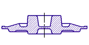 Штампы с разъемными матрицами могут иметь две и более поверхностей разъема. Поэтому, поковки, полученные в штампах с разъемными матрицами, в большинстве своем характеризуются меньшим объемом напусков, либо их полным отсутствием. Возможно изготовление поковок со сквозными отверстиями. В таких случаях не требуется конструирование наметок под прошивку. Штамповочные уклоны назначают значительно меньших размеров или их можно совсем не предусматривать.