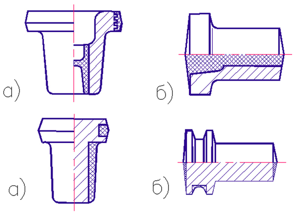 Как видно из рисунка, изменение расположения плоскости разъема приводит к изменению формы поковки и влияет на величину назначаемых на поковку напусков, а значит и на величину КИМ.