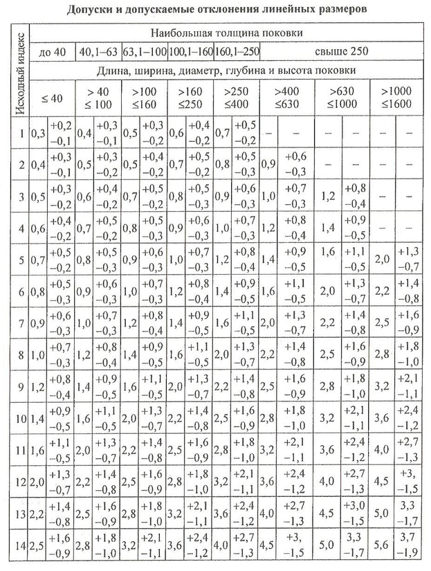 Допускаемые отклонения поковки (продолжение)