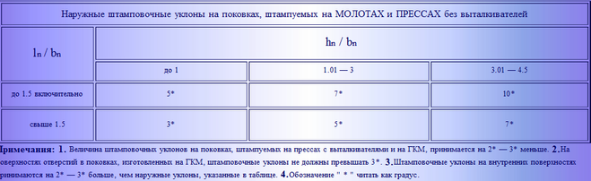 Наружные штамповочные уклоны назначают из стандартного ряда уклонов (табл. 2.18)