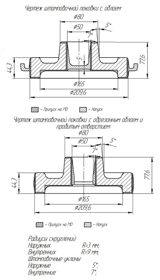 Радиусы закруглений на поковку: