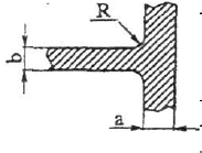 где a+b – толщины сопрягаемых или пересекающихся стенок отливки, мм; коэффициенты принимают равными 1/3, если (a+b)/2<50 мм; 1/5, если (a+b)/2>50 мм.