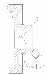 4)Расточить отверстие «А» 165мм на глубину 15 мм. Инструмент: токарный проходной упорный резец (рис.5.3);