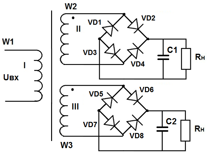 | Выпрямитель с нагрузкой | Мостовая схема выпрямителя |