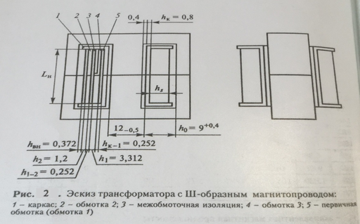 Таким образом, суммарная толщина изоляции между первичной обмоткой и каркасом hk-1 = 0,252 мм.