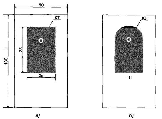 При стрельбе по проверочной мишени (б) точкой прицеливания служит середина нижнего края мишени, обрезанной по восьмой горизонтальной линии. Положение КТ мишени (а) отмечается по отвесной линии выше точки прицеливания на расстоянии 11 см.