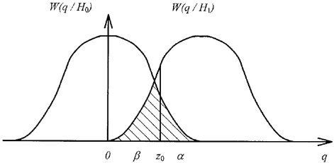 Ошибка типа «ложная тревога» возникает, когда принято решение 1 – «сигнал есть», а в действительности сигнал отсутствует (то есть верна гипотеза