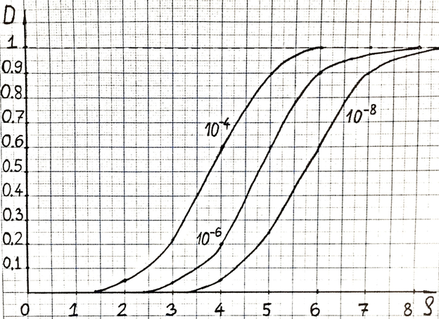 менять от 0 до 8 с шагом равным 1; вероятности ошибки типа «ложная тревога» взять равными