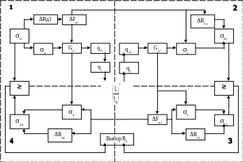 4. На третьем и четвертом этапах рассчитываются погрешности σΣ3 и σΣ4, имеющие место в оптимизированном для дальности R2 = Rmax измерителе на дальностях R2 и R1 соответственно.