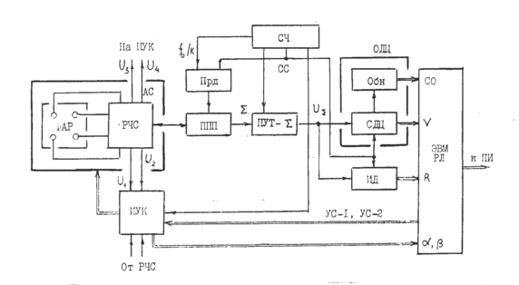 Структурная схема азимутального канала показана на рис. 4.3. Предусмотрено два режима работы этого канала: рабочий, когда измеряется угол