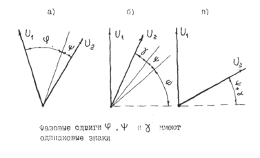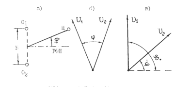 . Сказанное поясняется векторными диаграммами, показанными на рис. 1.7, где диаграмма "а" соответствует сигналам на входе ПУТ-1 и ПУТ-2, диаграмма "б" - сигналам на входе ФД, а диаграмма "в" - тоже сигналам на входе ФД, но при нахождении цели на РФН.