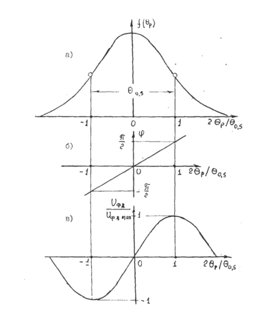 на точность определения угловых координат. Фазовый сдвиг на 90° в одном из ПУТ необходим для получения дискриминационной характеристики вида