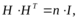 где НТ – транспонированная матрица Н, т.е. такая, которая получается из Н путем замены ее строк на столбцы; I – единичная матрица, т.е. такая, элементы которой на главной диагонали равны единице, а остальные элементы равны нулю.
