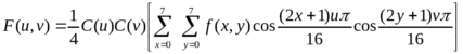 JPEG разбивает все изображение на блоки размером 8x8 пикселей. Точки в каждом блоке нумеруются от (0,0) в левом верхнем углу до (7,7) в правом нижнем. К каждому такому блоку применяется двумерное дискретное косинусоидальное преобразование (DCT), которое превращает информацию об интенсивности цвета f(x,x), в пространственные частоты F(u,v), указывающие на то, насколько быстро эти интенсивности изменяются для каждой из частот.