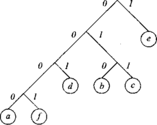 В этом примере наиболее редко встречаются величины а и f, поэтому они становятся первой парой и будут иметь наиболее длинные коды. Младший бит этих кодов будет являться 0 для а и 1 — для f. Старшие биты этих кодов будут получены из дерева по мере его построения.