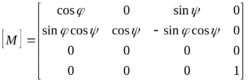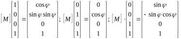 При повороте на угол относительно оси ординат, затем на угол вокруг оси абсцисс, затем параллельном проецировании вдоль Оz (аппликат), образуется матрица: