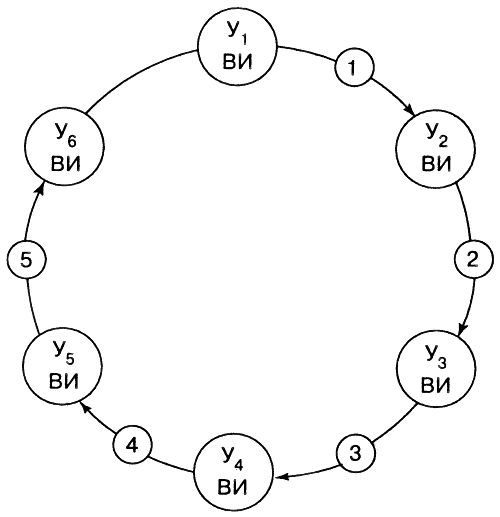 У — участник проблемной группы (6); ВИ — выдвига-емая идея (3); 1 — порядковый номер передачи идей для последующего анализа (5)