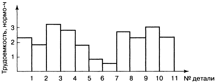 Рис. 9.4. Гистограмма трудоемкости изготовления деталей изделия