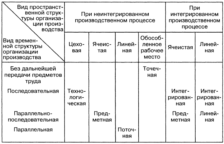 Различные временны’е и пространственные структурные построения образуют совокупность основных форм организации производства.