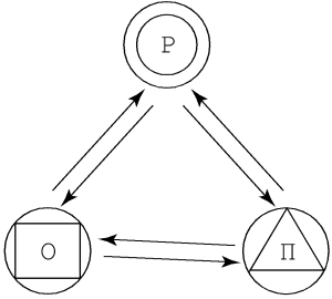 Р — рабочая сила; О — орудия труда; П — предметы труда