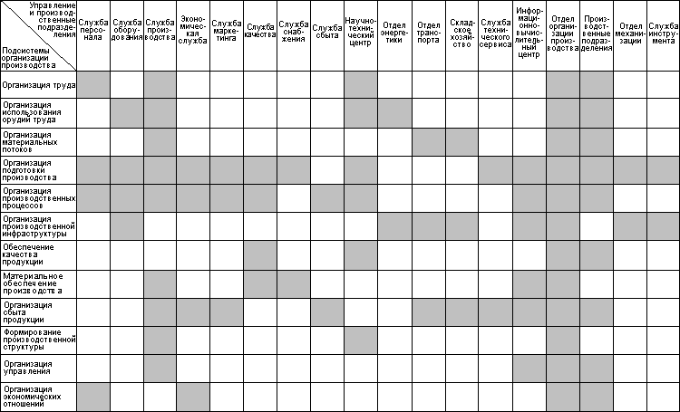 Рис. 2.3. Матрица участия производственных и управленческих подразделений в работе по организации производства