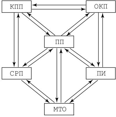 Рис 2.1. Отображение взаимосвязей элементов производственного процесса: