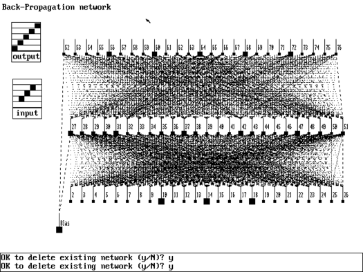 Рис. 10. Сеть обратного распространения. Неполный образ “Х”.