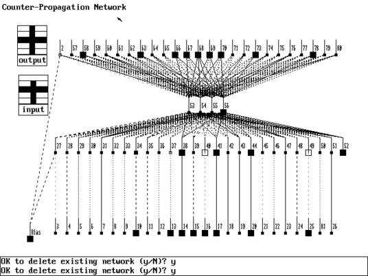 Рис. 6. Сеть встречного распространения. Неполный образ “Х”