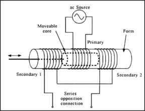 Рис. Дифференциальный (трехобмоточный) индуктивный датчик перемещений