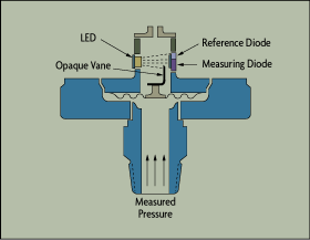 При постоянном питающем мост напряжении сигнал на выходе моста  U пропорционален измеряемому давлению. Механическая деформация рассогласовывает мостовую схему.
