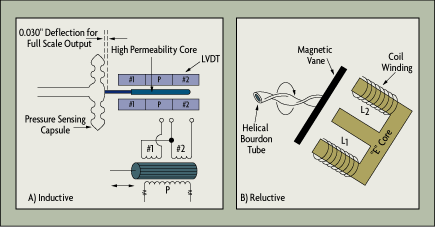 Рис. А – магнитный преобразователь сильфонного датчика давления. Б – магнитный преобразователь датчика давления на спиральной трубке Бурдона.