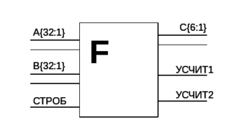 входные: A{32:1}, B{32:1}, СТРОБ;